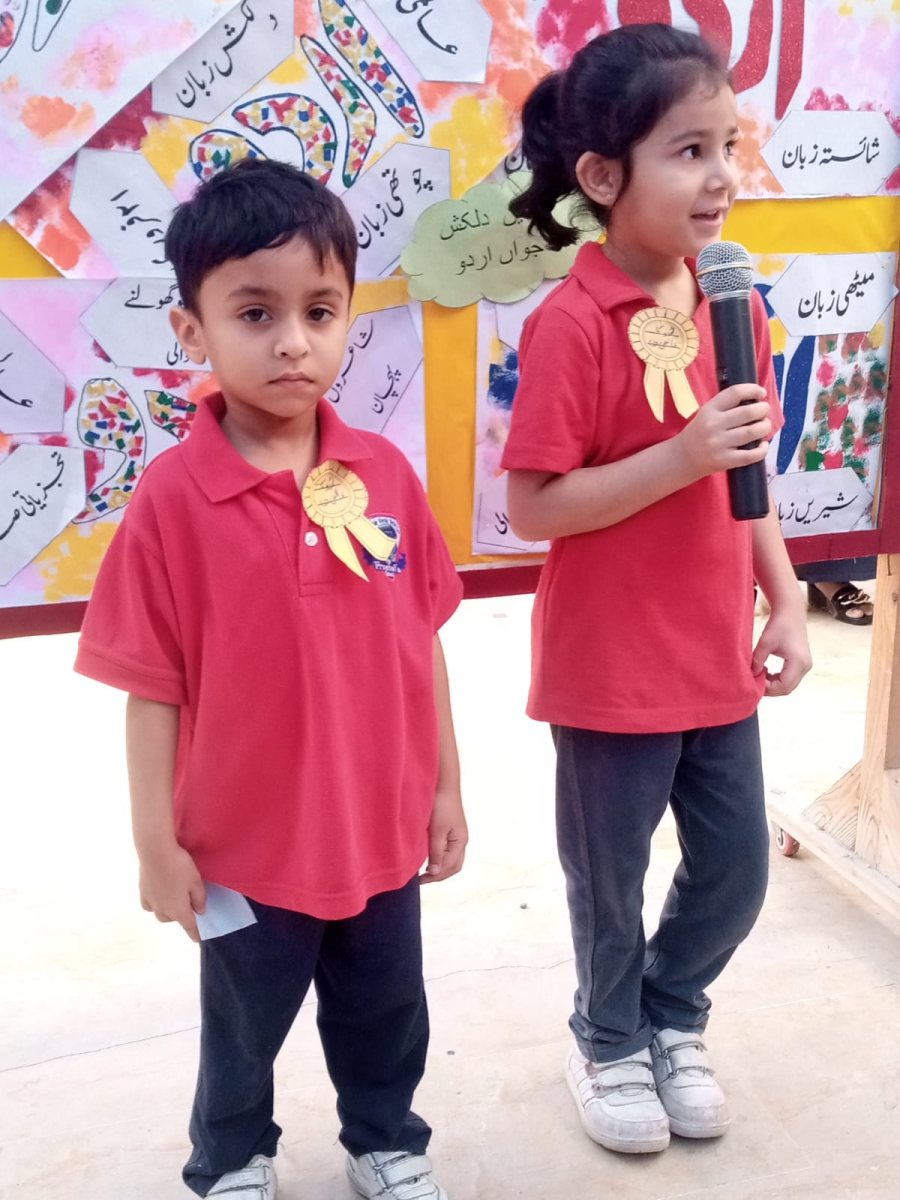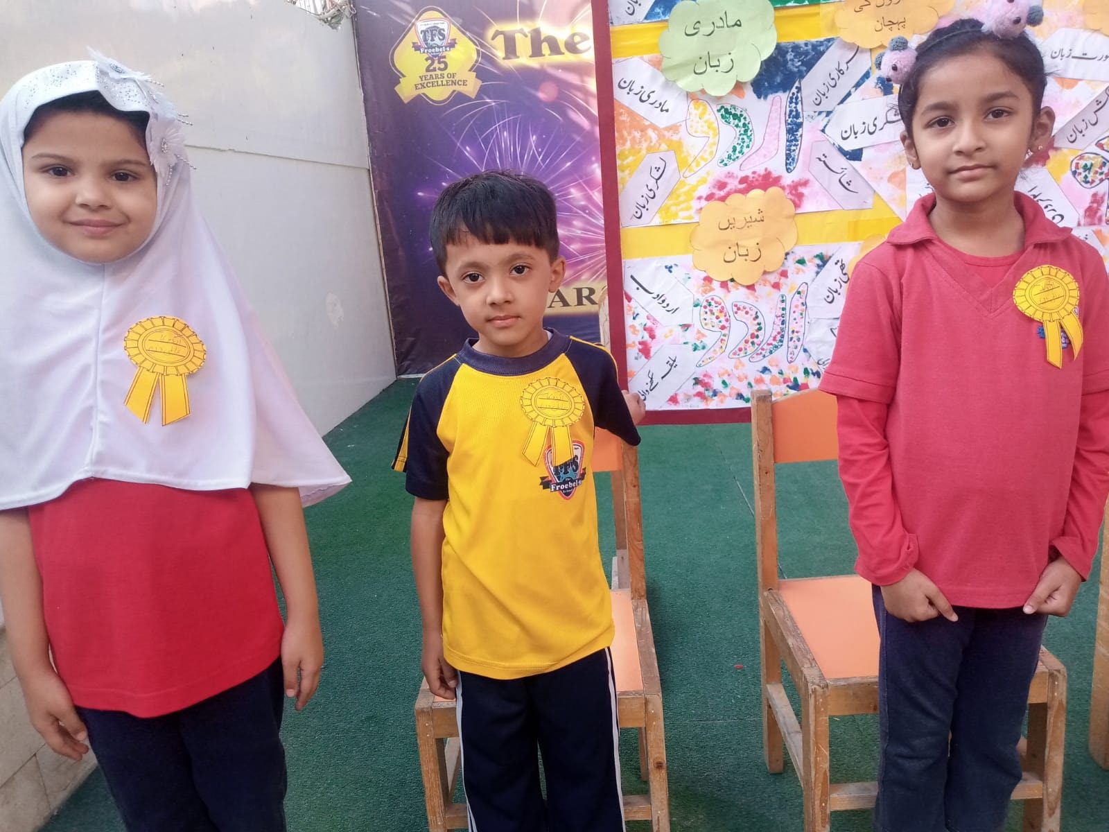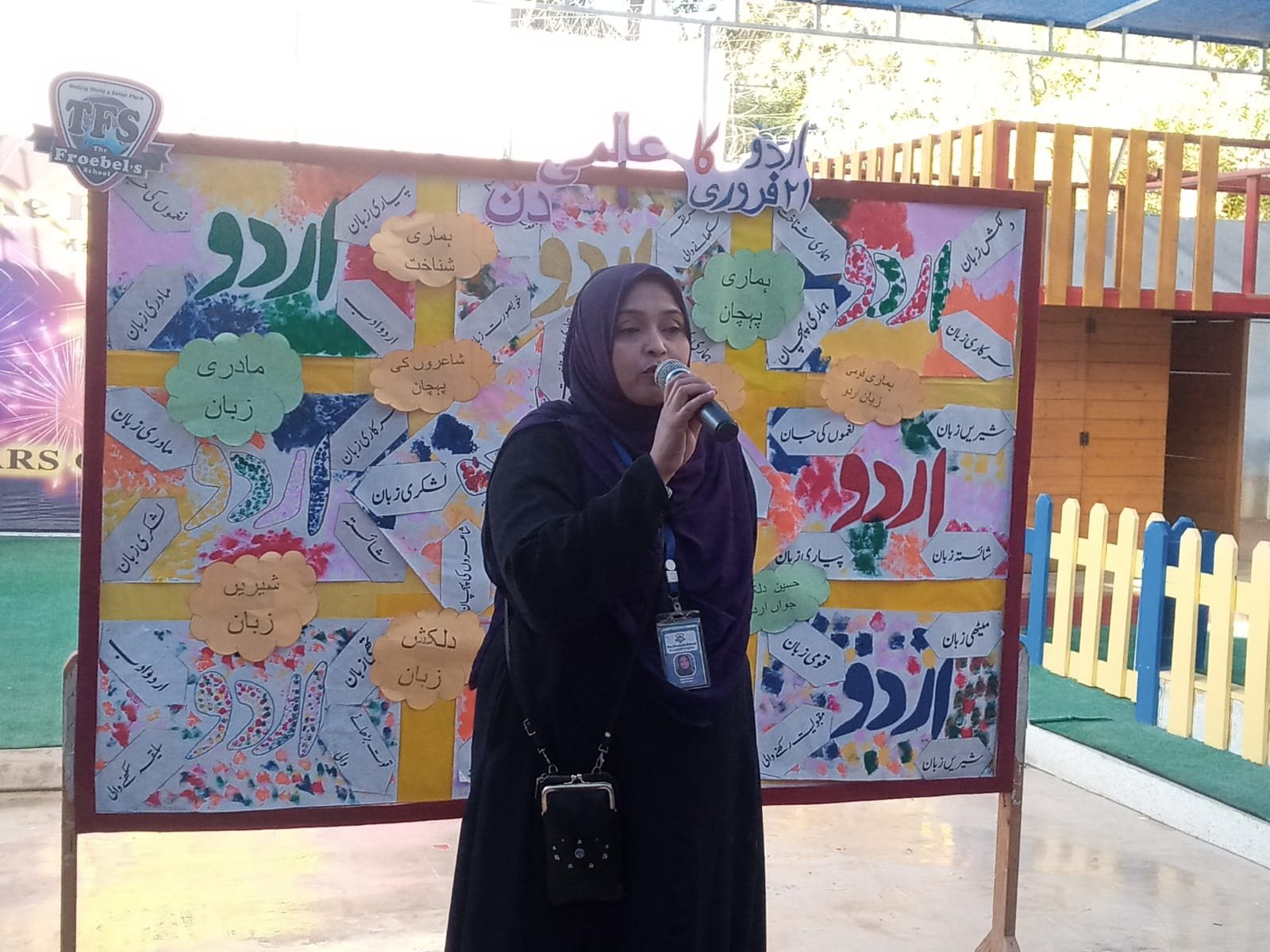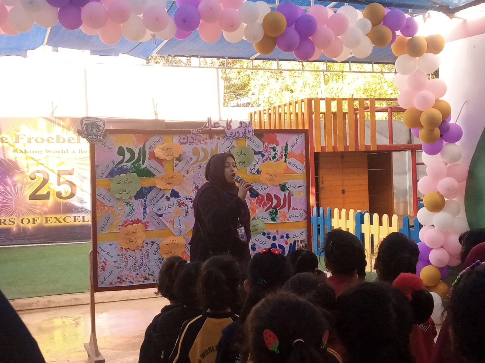 The Froebel’s School Kinder Garden Grade III celebrated the World Urdu Language Day on Tuesday, February 21, 2023 this year, in which the little students were given information about the importance of Urdu language and various activities as well were introduced such as: Urdu language poems, drama, banners, badges and verbal sentences based on originality and importance of Urdu language. Students participated with full joy and enthusiasm in all the above activities aimed at instilling their national language within students